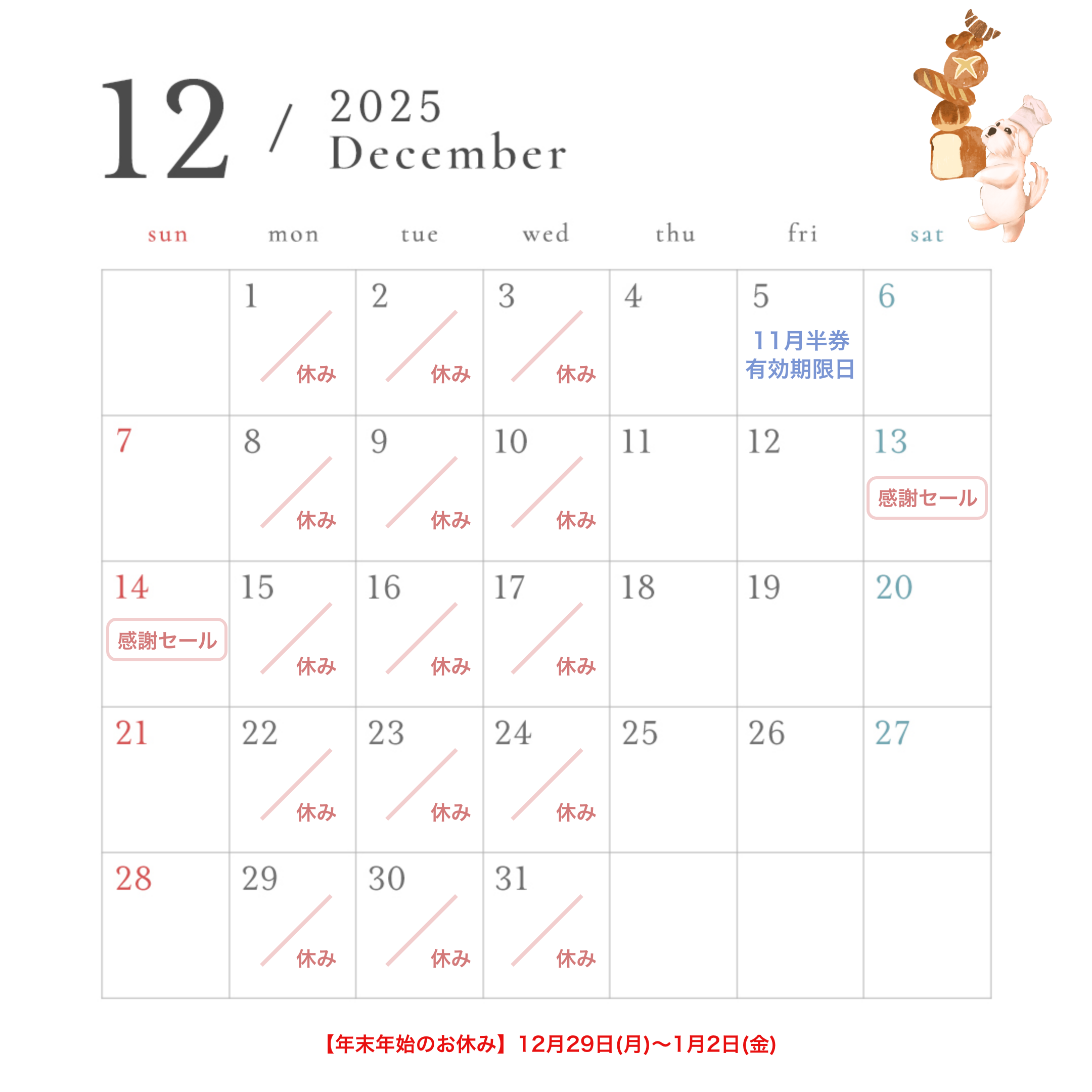 | 定休日 | 月・火・水 |